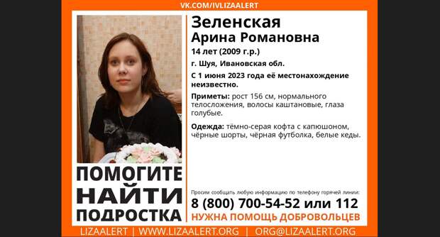 В Шуе в День защиты детей пропала 14-летняя девочка. Отряд «Лиза Алерт» объявил поиски подростка и распространил ориентировку, которая может помочь найти ребенка.