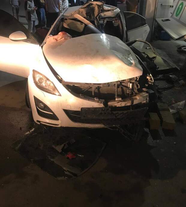 Водитель за рулём автомобиля Mazda 6 двигался по улице Мацоты в сторону улицы Котовского, когда на пересечении с Харьковским шоссе на скорости въехал в Ладу Калину. В результате столкновения иномарку выбросило сначала на тротуар, а затем в здание сервисного центра.В аварии обе машины получили повреждения, однако иномарке досталось больше. Вдобавок к этому прибывшие медики диагностировали травмы различной степени тяжести у водителя машины и его пассажирки.