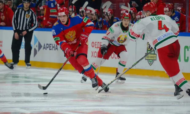 Первый гол забили белорусы. Белкин с подачи Лазовского на 19-й минуте игры забросил шайбу в ворота сборной России.