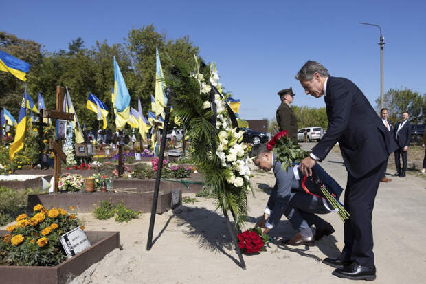 Он напомнил, что высокопоставленного гостя в первую очередь повезли на кладбище, где похоронены погибшие на полях сражения украинские солдаты.