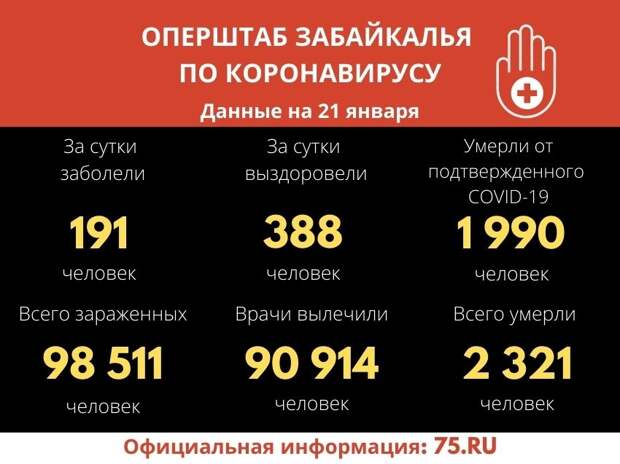 За минувшие сутки 388 жителей края вылечились от коронавируса, общее количество победивших болезнь забайкальцев приблизилось к 91 тысяче.