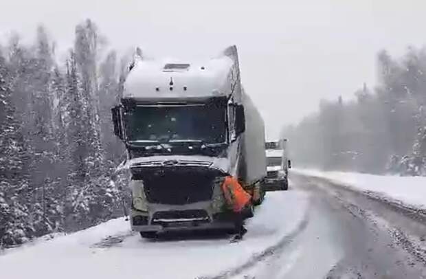 На федеральной автодороге критическое положение из-за снега и гололёда.