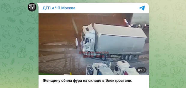 На территории крупного складского комплекса в подмосковной Электростали многотонный большегруз совершил наезд на женщину. На записи с камер наружного наблюдения видно, как фура начинает медленное движение в зоне погрузки. Перед машиной в этот момент находилась женщина — по предварительной информации, сотрудница склада.